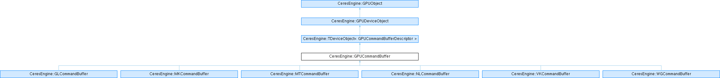 CommandQueue or executed by a primary command buffer. Implemented in CeresEngine::MTCommandBuffer, CeresEngine::MKCommandBuffer, CeresEngine::NLCommandBuffer, CeresEngine::GLCommandBuffer, CeresEngine::VKCommandBuffer, and CeresEngine::WGCommandBuffer.