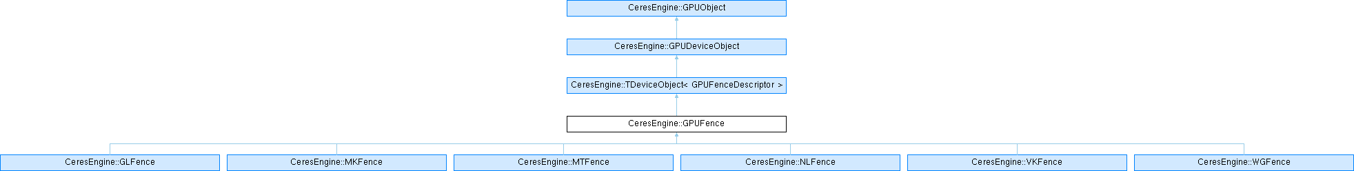 - Public Member Functions inherited from CeresEngine::TDeviceObject< GPUFenceDescriptor >