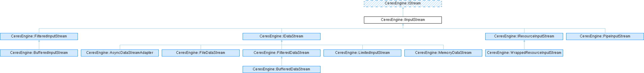 CeresEngine::IStream CeresEngine::FilteredInputStream CeresEngine::IDataStream CeresEngine::IResourceInputStream CeresEngine::PipeInputStream CeresEngine::BufferedInputStream CeresEngine::AsyncDataStreamAdapter CeresEngine::FileDataStream CeresEngine::FilteredDataStream CeresEngine::LimitedInputStream CeresEngine::MemoryDataStream CeresEngine::WrappedResourceInputStream CeresEngine::BufferedDataStream