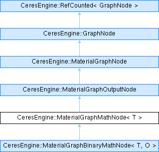 Inheritance diagram for CeresEngine::MaterialGraphMathNode< T >: