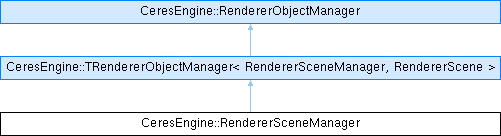 Public Member Functions inherited from CeresEngine::TRendererObjectManager< RendererSceneManager, RendererScene > | |