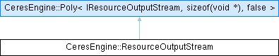 Public Member Functions inherited from CeresEngine::Poly< IResourceOutputStream, sizeof(void *), false > | |