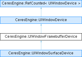 Public Member Functions inherited from CeresEngine::RefCounted< UIWindowDevice > | |