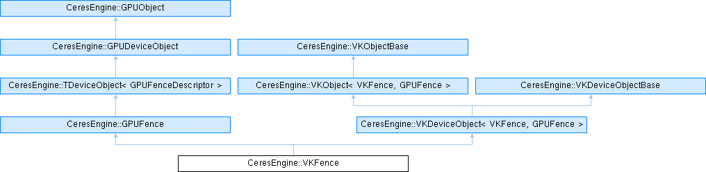 Protected Member Functions inherited from CeresEngine::VKDeviceObject< VKFence, GPUFence > | |