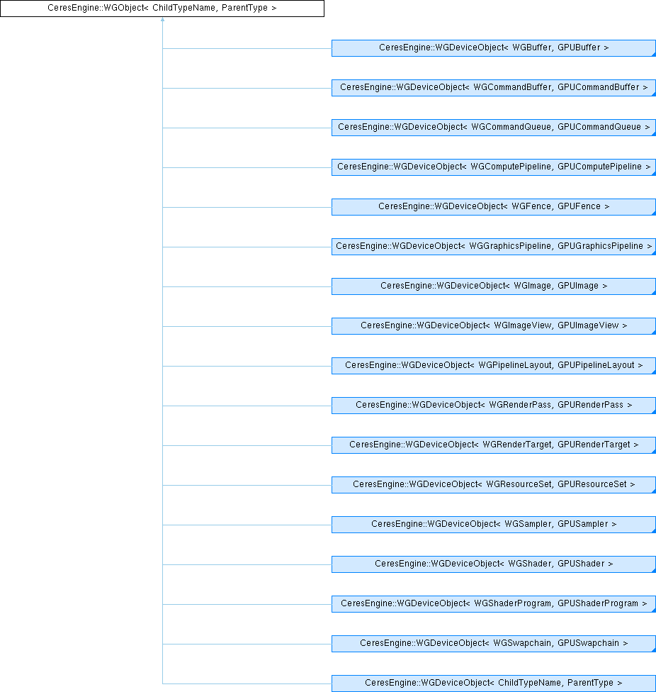 Inheritance diagram for CeresEngine::WGObject< ChildTypeName, ParentType >: